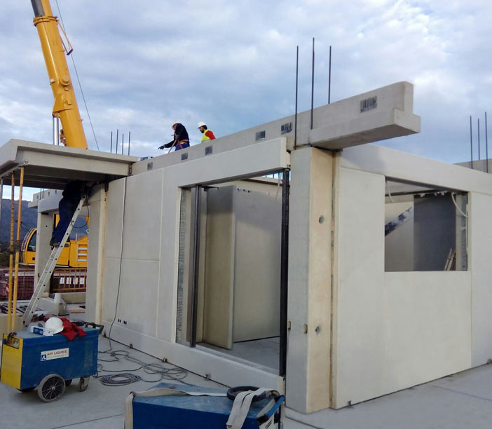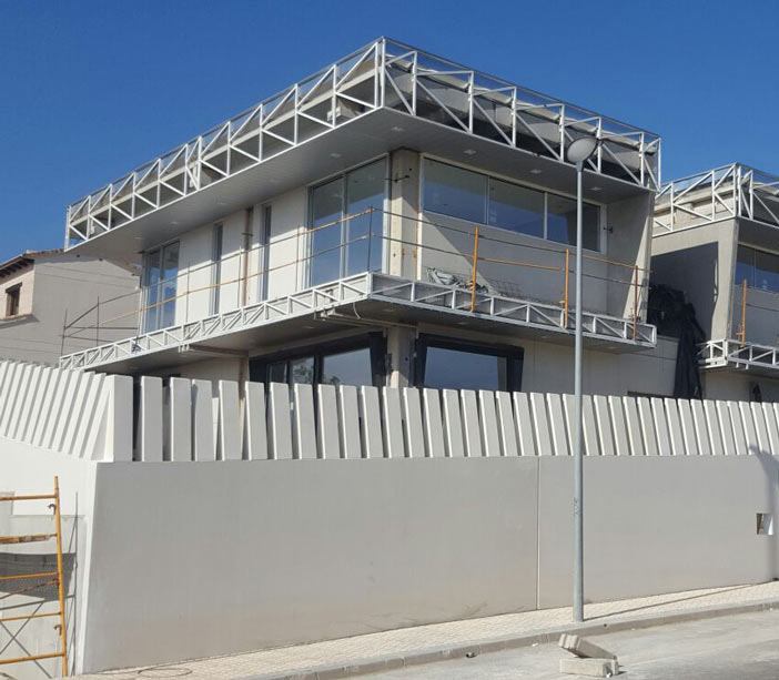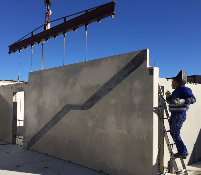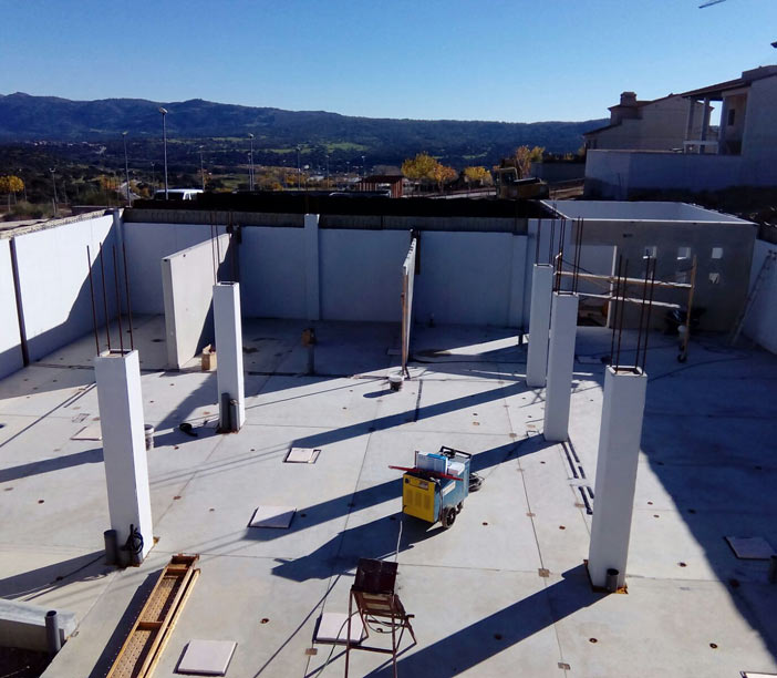 Además el empleo de los paneles portantes como elementos, cumple con una doble función: estructural y de cerramiento. Esto permite la fusión de dos funciones y disminuye el plazo total de la obra. Es decir, realizamos la ejecución de la estructura al mismo tiempo que el cerramiento de fachada mediante paneles de hormigón macizo.